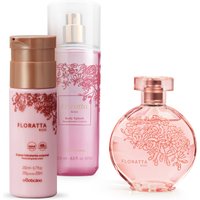 Combo Presente Floratta Rose: Desodorante Colônia 75ml + Creme Corporal 200ml + Body Splash 200ml: O Combo Presente Floratta Rose transmite a essência de uma mulher livre, alegre e otimista, tão apaixonante como o cheiro das rosas! Estes três itens são ótimos presentes para exaltar a delicadeza e a sensibilidade do amor. A fragrância feminina ainda vai ficar marcada por onde passar, além de deixar o corpo hidratado e macio. DESODORANTE COLÔNIA O Floratta Rose Desodorante Colônia é uma fragrância regada de flores encantadoras, que despertam alegria, feminilidade e otimismo! É considerada uma das fragrâncias clássicas da perfumaria feminina o Boticário ! Família olfativa: Floral. CREME ACETINADO HIDRATANTE CORPORAL O Creme Hidratante Desodorante Corporal Floratta Rose entrega hidratação para o corpo, além de uma perfumação intensa com a clássica fragrância de Floratta Rose ! A pele ficará macia e com um toque aveludado por até 48h. Ainda não deixa um aspecto pegajoso e oleoso. BODY SPLASH DESODORANTE COLÔNIA O Body Splash Desodorante Colônia Floratta Rose é o presente ideal para quem ama aquele frescor indescritível pós-banho! Com seu toque refinado e fragrância alegre, deixa a pele cheirosa por mais tempo. Mistura as notas de flores com Mandarina, Cassis e Pêssego. Todos os dias, presenteie com O Boticário! Este combo contém: 01 Floratta Rose Desodorante Colônia 75ml 01 Creme Desodorante Hidratante Corporal Floratta Rose 200ml 01 Body Splash Desodorante Colônia Floratta Rose 200ml Nenhum produto O Boticário é testado em animais, ou seja, este item possui selo Cruelty Free.
