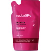 Refil Loção Desodorante Hidratante Corporal Nativa SPA Ameixa 400ml: O Refil Loção Desodorante Hidratante Corporal Nativa SPA Ameixa entrega a reposição de sua fragrância favorita com praticidade e economia. A fórmula de Nativa SPA Ameixa é enriquecida com gotas purificadas de quinoa, considerada a semente da beleza, a quinoa oferece inúmeros benefícios, como hidratação profunda, aumento da produção de colágeno e prevenção da perda de elasticidade da pele. Além de hidratar por horas, o Refil da Loção Corporal traz a fragrância marcante e intensa da Ameixa em microcápsulas. Essa tecnologia entrega maior perfumação para sua pele, pois ao longo do dia essas esferas se rompem e entregam um momento de fragrância intenso para seu dia. Garantindo benefícios como: PraticidadeDesodorização para a peleEconomiaHidratação o dia todoPerfumação na medida certa. Nativa SPA está empenhada em reduzir diariamente o seu impacto no meio ambiente: os refis dão uma segunda vida para o frasco da sua loção. Nossa embalagem de refil usa 78% menos plástico que a do produto regular. SOBRE A LINHA: A linha Ameixa entrega produtos inspirados na fruta que leva o mesmo nome para uma explosão de cores, aromas e texturas, carregando o aroma da família olfativa floriental ambarada que garante um momento incrível de cuidado para sua pele ao longo do dia. Nenhum produto O Boticário é testado em animais, ou seja, este item possui selo Cruelty Free.